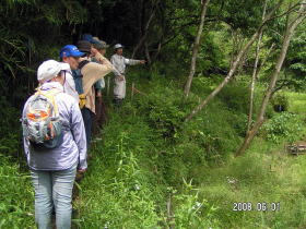 | 6月1日(日)、鶴見川源流保水の森にて、町田市主催の体験学習会「源流森づくりボランテイア」が催しされ、私どもNPO法人鶴見川源流ネットワークもそのお手伝いをいたしました。 対象は、一般公募の市民で、作業体験を通じて鶴見川源流の森と保全活動について理解を深めてもらうことを狙いとしています。プログラムは、竹の伐採体験学習と森の視察、自然と谷戸山の室内学習の2部構成となっています。 久しぶりに天気に恵まれやや暑い中、9:30に参加者が「鶴見川源流泉のひろば」に集合。主催者の挨拶後、注意事項などオリエンテーリング、道具の配布を行い、作業現場の西の窪ベースキャンプへ移動しました。 スタッフが道具の説明、使い方、竹の伐採方法をデモンストレーション。 10:30から2班に分かれて実作業を行い、12:00に作業終了。昼食休憩をとり、13:00から源流の保水の森を周遊視察、どんぐり畑、杉谷戸展望の丘経由で小山田桜台集会所に向かいました。 15:00より室内学習、町田市の職員から北部丘陵保全に至った経緯の説明、慶応大学の岸教授から「自然と谷戸山管理」について講義がありました。 続いて質疑応答にはいりましたが、過去2回より参加者は少なかったものの、的確な質問が多く充実した時間となりました。 |